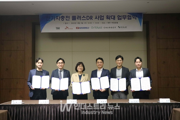 [인더스트리뉴스 이건오 기자] 한국전력(사장 정승일)은 5월 3일, 제주 부영호텔에서 DR사업자인 △그리드위즈, 충전사업자인 △SK일렉링크 △차지비 △스칼라데이터 △티비유와 ‘제주도 전기차충전 플러스DR 사업 확대’를 위한 업무협약 MOU를 체결했다고 밝혔다.