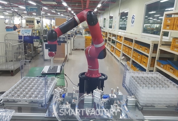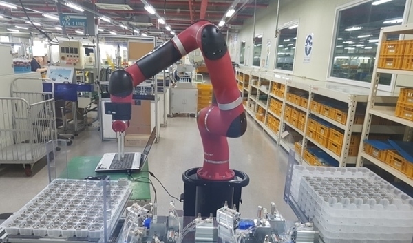 스마트 팩토리 융합솔루션 적용으로 동일하지만 반복 작업으로 인해 집중도가 떨어져 단순 불량 발생이 일어나거나 숙련자와 비숙련자에 따라 달리 일어나는 업무 로스를 해결하고 있다. 이는 생산 유연성 확보와 원가 절감을 실현하기 위해 작업자와 로봇이 함께할 수 있는 솔루션을 제공하는 것에 목표를 설정했고 기존 생산중인 제품 실린더 밸브를 활용해 조립 지그를 제작했다. 정철호 이사는 “밸브의 스틸볼 압입공정 개선을 위해 3D 프린터를 활용하고 협동로봇의 그리퍼와 가이드를 제작해 현장에 투입시켰다”며, “기존에는 이 작업 공정을 위해 작업자 인원이 2명이었으나 1명을 다른 작업 공정에 투입해 생산성을 올리고 업무를 개선했다”고 말했다. 이어 “이를 기반으로 타 기업에 단순 노동 작업의 자동화 등 국지적인 융합 솔루션을 지원하는 것을 목표로 하고 있다”고 전했다.