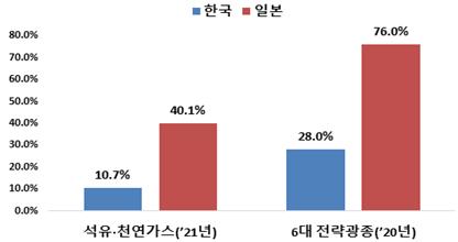 6대 전략 광종 자원개발률 韓 28% vs 日 76%