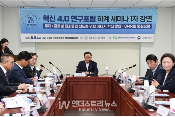 [인더스트리뉴스 최종윤 기자] 국회 혁신 4.0 연구포럼(대표의원 이종배, 이개호)이 주최하고 한국수력원자력과 산업통상자원부가 주관하는 하계 세미나 1차 강연이 ‘글로벌 탄소중립 선도를 위한 에너지 혁신 방안-SMR을 중심으로’를 주제로 지난 9일 국회의원회관 제2간담회실에서 진행됐다.