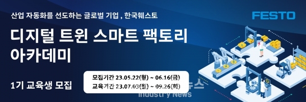 글로벌 산업 자동화 솔루션 전문기업 한국훼스토(Festo Korea, 대표이사 토마스 레킥)도 오는 6월 16일까지 ‘디지털 트윈 스마트 팩토리 아카데미’ 교육생을 모집 중이다. 혁신적인 자동화 솔루션과 다채로운 디지털화 기술로 업계를 선도하는 기업임을 인정받아 올해 처음으로 훈련 기관으로 선정된 한국훼스토는 △스마트 팩토리 제조 기반 기술 △스마트 팩토리 제조 상위 기술 △ERP-MES 통합 CPS Application 개발 등 총 3개의 대주제로 교육 과정을 진행할 예정이다. 한국훼스토 웹사이트에 접속해 메인 배너를 클릭하면 교육 과정의 상세 내용 열람과 함께 신청 페이지로 바로가기가 가능하다.