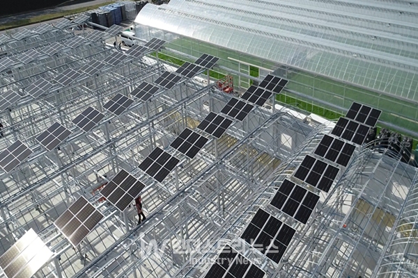 이번 태양광 스마트팜에 적용된 한화솔루션의 영농형 태양광 모듈은 일반 모듈의 절반 크기로 제작됐다. 온실의 햇빛 확보를 방해하지 않고 낙수 피해를 최소화 시킬 수 있도록 설계됐다.