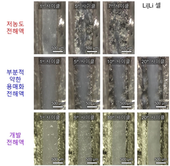 이번 논문의 공동 제1저자인 KAIST 생명화학공학과 김세훈 박사과정은 “새로운 솔베이션 구조에 의한 리튬이온의 이동도 향상과 구동 온도 범위의 확장, 그리고 전해액 첨가제에 의한 안정적인 전극-전해질 계면 형성의 시너지 효과에 의해 기존에 보고된 리튬금속 전지용 전해액 기술 개발의 한계를 뛰어넘는 기술을 개발하게 됐다”고 말했다.