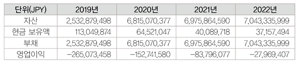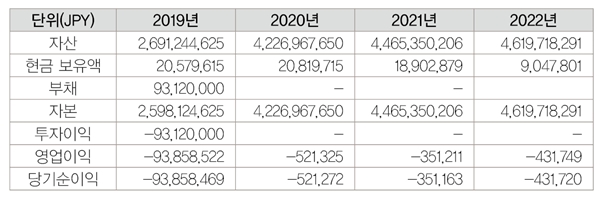 또 Suimei LP는 관리 수수료 외에도 법률 자문, 회계, 보험 등 수수료 등의 이유로 매년 2~3억원을 사용해 현금 보유액이 2019년 말 1억1,305만엔(한화 약 10억2,769만원)에서 2022년 말 약 3,716만엔(한화 약 3억3,778만원)으로 급감해 추가 자금 조달이 이뤄지지 않을 경우, 심각한 유동성 위기가 발생할 수 있는 상황이다.