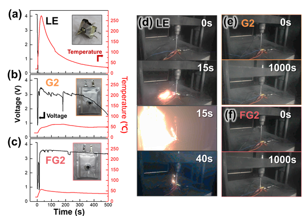 공동 제1저자인 김믿음 UNIST 에너지화학공학과 및 한국화학연구원 석사는 “전해질의 불연성 평가에 그치지 않고 파우치형 전지에 적용하는 등 다양한 실험을 통해 배터리 자체의 우수한 안전성을 확인했다”고 설명했다.