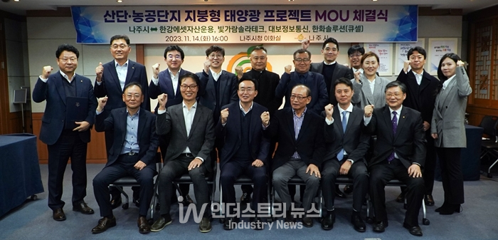나주시는 지난 11월 14일, 나주시청사 이화실에서 △한강에셋자산운용 △대보정보통신 △한화솔루션 △빛가람솔라테크 등 4개사와 ‘산단·농공단지 지붕형 태양광 프로젝트’ 업무협약을 체결했다고 밝혔다.
