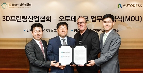 [Industry News 박규찬 기자] 세계적인 3D 디자인, 엔지니어링, 엔터테인먼트 소프트웨어 선도 기업인 오토데스크와 국내 3D 프린팅 업계의 대표적인 비영리기관인 3D 프린팅산업협회가 27일 코엑스 컨벤션 센터에서 열린 ‘오토데스크 유니버시티 코리아’에서 국내 3D 프린팅 기술 확산 및 기술력 강화를 위한 양해각서(MOU)를 체결했다.