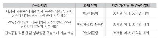 산업부는 태양광 폐모듈의 ‘재사용·재활용률 고도화’를 통해 저탄소 순환경제 구축을 위한 원천기술을 확보할 계획이다. MW급 산업단지 지붕태양광 설치 및 운영 최적화에도 기대를 걸고 있다. 빅데이터 관리시스템 구축과 MLPE(Module Level Power Electronics) 기반의 태양광 O&M 기술 등이 여기에 속한다.
