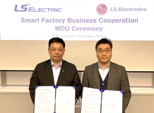LS일렉트릭은 LG전자 생산기술원과 지난 5일 LS용산타워에서 ‘스마트팩토리 사업 협력 체계를 구축함에 있어 상호 공동 이익 증진을 위한 업무협약’을 체결했다고 6일 밝혔다. 협약 체결식에는 LS일렉트릭 조욱동 상무와 LG전자 송시용 상무를 비롯한 양사 관계자들이 참석했다.