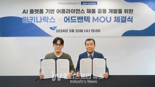 [인더스트리뉴스 조창현 기자] 제조 산업에 특화된 AI 모델을 활용할 수 있는 임베디드 서버 등 AI 어플라이언스 제품을 하드웨어 및 소프트웨어 각 영역에서 전문성을 가진 두 기업이 만나 공동으로 개발한다. 엔터프라이즈 AI 기업 마키나락스(대표 윤성호)가 산업용 AIoT 전문기업 어드밴텍케이알(대표 정준교, 이하 어드밴텍)과 ‘AI 플랫폼 임베디드 서버 공동 개발’을 위한 MOU를 지난 20일 체결했다고 21일 밝혔다.