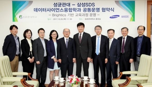 삼성SDS 정유성 대표와 성균관대학교 정규상 총장 등이 참석한 가운데 10월 26일 성균관대학교 총장실에서 빅데이터 분석 기술 활성화와 공동 연구 등을 위한 산학협력 MOU(양해각서)를 체결했다.