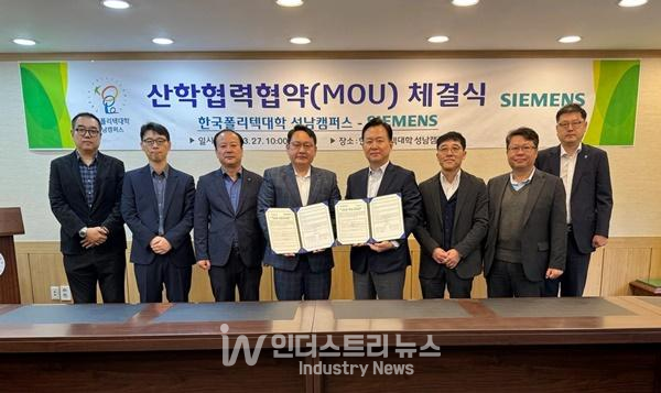 대학본부 회의실에서 열린 협약식에는 지멘스DISW 오병준 사장, 진봉용 기술총괄부문장, 이치원 아카데믹파트너프로그램상무와 함께 한국폴리텍대 김종진 학장(성남캠퍼스), 오상균 교학처장, 민경석 교수, 최선교수, 박수영 교수가 참석했다.