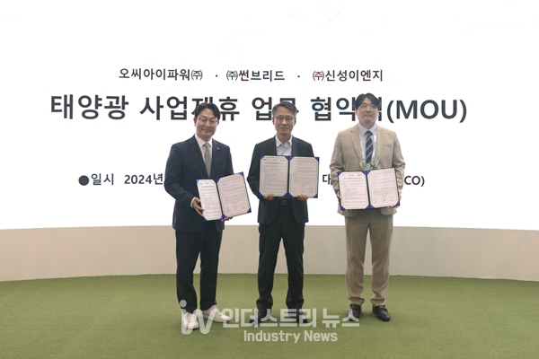 [인더스트리뉴스 이건오 기자] 국내 태양광 1세대 기업인 신성이엔지는 지난 4월 24일 대구 엑스코(EXCO)에서 OCI파워, 썬브리드와 태양광 사업 분야 상호 협력 강화 및 사업 추진에 대한 업무협약을 체결했다고 밝혔다.
