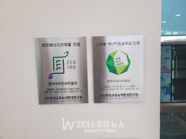 이에 따라 합덕수리민속박물관은 1㎡당 에너지 요구량 68.6kWh, 1㎡당 이산화탄소 배출량 3.0kg 등으로 에너지효율등급 최고등급(1+++)을 받고, 제로에너지건축물(ZEB) 2등급 인증을 획득했다.