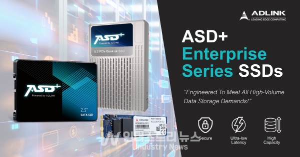 [인더스트리뉴스 조창현 기자] 데이터 센터, AI 기반 프로젝트 및 자율 차량 데이터 로거의 데이터 집약적 애플리케이션을 위해 설계돼 수준 높은 성능과 신뢰성을 보장하는 새로운 SSD가 출시됐다. 엣지 컴퓨팅 분야 글로벌 리더 에이디링크테크놀로지(ADLINK Technology)는 ASD+ 엔터프라이즈 시리즈 SSD에 대한 출시를 지난 21일 발표했다.