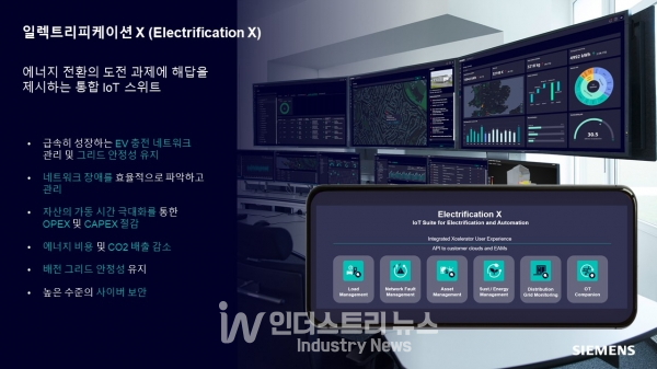 다음으로 일렉트리피케이션 X는 전기화와 스마트 그리드의 발전을 지원하는 혁신적인 솔루션이다. 확장성이 뛰어난 클라우드 서비스를 기반으로 구축돼 상업 및 산업, 유틸리티 고객의 까다로운 전기화 인프라를 관리, 최적화, 자동화하도록 설계됐다.