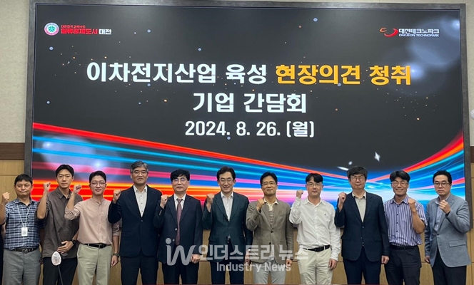 대전시는 지난 8월 26일, 대전테크노파크 어울림플라자에서 지역 내 이차전지산업 유망기업 대표와 산업육성방안 및 애로사항 청취 등을 위한 소통 간담회를 개최했다고 밝혔다.