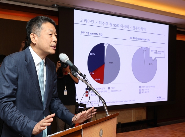 이어 고려아연의 투자 관련 의혹 제기에 대해서는 “원아시아파트너스에 투자한 펀드들의 가치평가는 감사인인 회계법인의 감사를 받아 금융당국에 공시까지 한 것”이라며 “그러나 영풍과 MBK파트너스는 자의적인 밸류에이션으로 손실액을 과장하고 부풀렸다”고 반박했다.