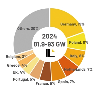 PV인포링크(PV InfoLink)는 2024년 글로벌 모듈 수요를 470~529GW로 추정했다. 동시에 유럽이 82~93GW를 기록하며 중국에 이은 글로벌 2위 시장으로서 18%의 점유율을 차지할 것으로 전망했다. 2023년 태양광 신규설치용량 70GW를 기록했던 유럽은 REPowerEU 정책을 기반으로 올해에도 수요가 급증할 전망이다.