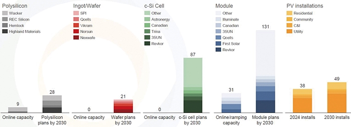 이에 따라 무역법 301조 변경이 가져올 미국 내 태양전지와 모듈에 대한 영향은 미미할 것으로 예상된다. 미국은 현재 폴리실리콘 생산용량은 9GW이나 가동되는 웨이퍼 생산용량은 없다. 2030년까지 계획된 폴리실리콘과 웨이퍼 생산용량은 각각 28GW, 21GW이다. 이에 폴리실리콘 수입에 대한 수요가 크지 않아서 폴리실리콘에 대한 새로운 관세가 미치는 영향은 2026년까지 거의 없을 것으로 분석된다.