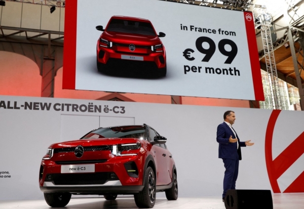 스텔란티스 산하 시트로엥은 가격이 2만3300유로(약 3461만원)인 시트로엥 E-C3 소형 전기차를 공개했으며 내년 상반기에는 1만9999유로 버전이 출시될 것이라고 밝혔다.