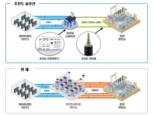 IDC 구축 등을 위해 전력 증설이 필요할 경우, 케이블을 교체하는 것만으로 송전 용량을 5배 이상 증가시킬 수 있다.