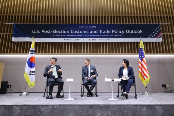 주한미국상공회의소(암참)는 지난 21일 서울 종로구 크레센도빌딩에서 김앤장 법률사무소와 함께 ‘미국 대선 이후 관세·통상 정책 전망 세미나’를 열었다고 22일 밝혔다.