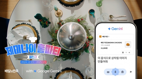 연말 크리스마스 시즌을 맞아 진행되는 제미나이 홈파티 챌린지는 배민 애플리케이션(앱)과 제미나이를 활용해 고객 누구나 재밌게 참여할 수 있는 이벤트다.