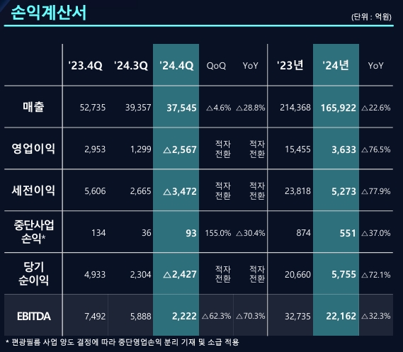 지난해 4분기 영업이익은 -2567억원으로 전년동기 대비 적자전환했다.
