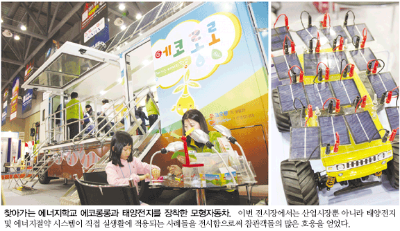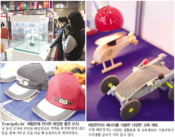 한편 세계 태양에너지 엑스포에서는 태양전지를 사용해 작동하는 다양한 생활소품들을 직접 체험해 볼 수 있는 체험관을 개관해 관람객들에게 더 큰 재미를 선사하기도 했다. 태양전지로 에너지를 모아 사용하는 키보드나 모자, 핸드폰 충전기, 가로등, 그리고 지난해 8월 솔라보트 축제에 선을 보여 화제가 되었던 충남대학교의 솔라보트가 이번 전시회장에 전시되어 참관객의 시선을 사로잡았다. 한국과학기술연구원에서 개발해 화제가 됐었던 솔라트리 역시 이번 태양에너지 엑스포에서 직접 만날 수 있는 기회를 제공했다.