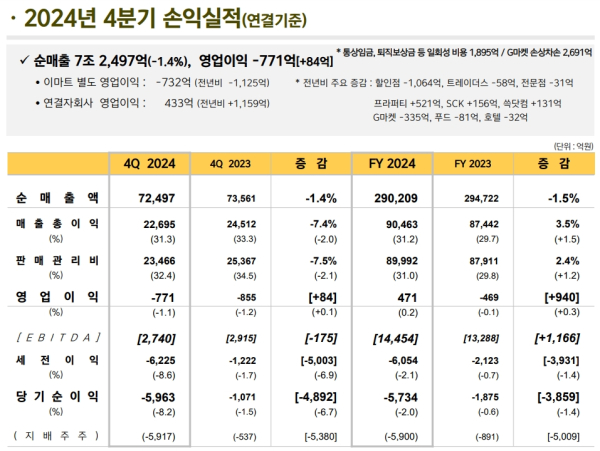 [인더스트리뉴스 서영길 기자] 이마트는 연결재무제표 기준 지난해 영업이익이 471억원으로 전년 대비 흑자전환했다고 11일 공시했다.