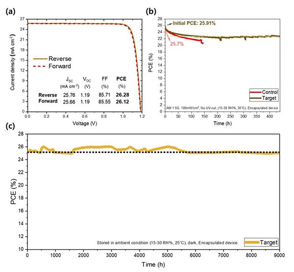 이 중간층 기술이 적용된 페로브스카이트 태양전지는 태양광을 전기로 전환하는 효율이 상용 실리콘 전지의 최고 효율에 버금가는 26.3%를 기록했고, 2023년 미국 재생에너지연구소(National Renewable Energy Laboratory)에서도 세계 최고 효율(25.82%)로 공인했다. 또 전지를 상온에 9,000시간 보관했을 때도 100% 가까이 성능을 유지하는 높은 보관 안정성을 보였다.