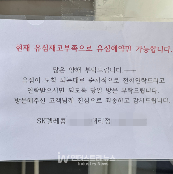 [인더스트리뉴스 김기찬 기자] SK텔레콤(SKT) 유심(USIM) 정보 해킹 사태 이후 유심 무상 교체가 시작된 당일, SKT 대리점 앞은 그야말로 '대란' 현장을 방불케 했다.