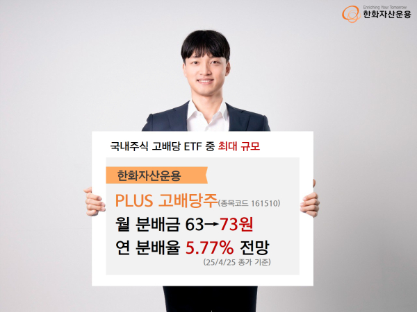 금정섭 한화자산운용 ETF사업본부장은 “최근 상법 개정과 배당세율 인하를 비롯해 다양한 배당 활성화 정책이 검토되면서, 고배당주의 주가 흐름이 한층 견조해졌다”며 “PLUS 고배당주 ETF는 매년 10% 이상의 배당 성장과 고정 월 분배금 지급의 두 축을 바탕으로, 예측 가능한 현금흐름을 원하는 투자자들에게 최적의 투자 기회를 제공할 것”이라고 말혔다.