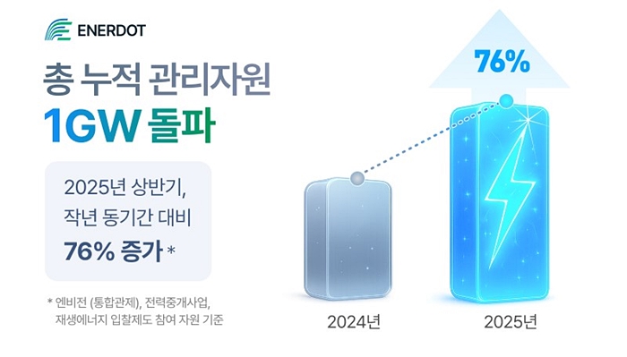 2025년 5월 말 기준 에너닷의 사업별 총 누적자원 규모는 1GW를 돌파, 2024년 동일 기간 대비 76% 증가했다. 분야별 추가 확보한 자원은 △엔비전(태양광 사업 전용 통합관제 솔루션) △재생에너지 입찰제도 자원 △전력중개사업 등 주력 서비스 분야에 포진돼 있다.