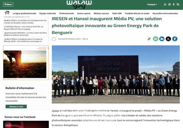 한솔테크닉스의 미디어PV 설치는 큰 반향을 불러일으켰다. 준공식에서 모로코 수원기관 IRESEN의 사미르 라치디 기관장은 “모로코는 2030년 스페인, 포르투갈과 함께 월드컵 개최를 앞두고 있다”며, “미디어PV를 통해 재생에너지 강국으로서의 위상을 전 세계에 알릴 것”이라고 강조했다.