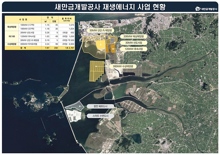현재 한국수력원자력, 전북개발공사, 민간사업자들과 협력해 주요 현안을 해결하고, 국내 최대 규모인 GW급 대규모 수상태양광 사업을 성공적으로 추진할 계획이다.