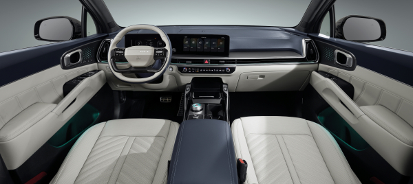 The 2026 쏘렌토는 새로운 디자인의 4스포크 스티어링 휠이 탑재됐으며, 앰비언트 라이트가 1열 도어 맵포켓까지 확대 적용돼 실내 고급감이 더욱 향상됐다.