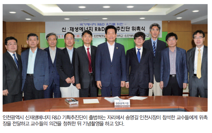 인천시는 신재생에너지 정책을 추진하면서, 해양 등 지리적으로 유리한 환경에도 불구하고 신산업의 발굴활동과 지역산업과 연계가 미흡하다는 판단 하에, 관내 대학 교수들과 인천테크노파크를 중심으로, ‘인천광역시 신재생에너지 R&D 기획추진단’을 출범하게 된 것이다.