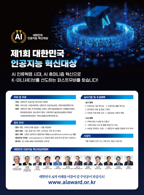 이번 행사는 인공지능 기술 활용을 통해 혁신을 이끈 기업, 공공기관, 대학, 스타트업, 개인 등 모든 분야에 열려 있으며, 응모 기간은 8월 1일부터 9월 30일까지다.