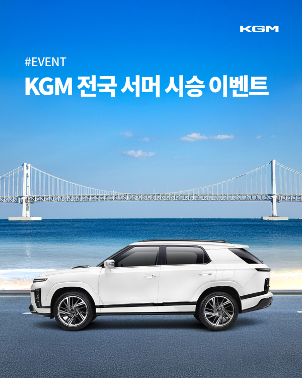이번 이벤트는 오는 8월 1일부터 31일까지 전국 대리점 및 익스피리언스 센터(일산, 강남, 부산) 등 KGM 전시장에서 동시에 실시한다.