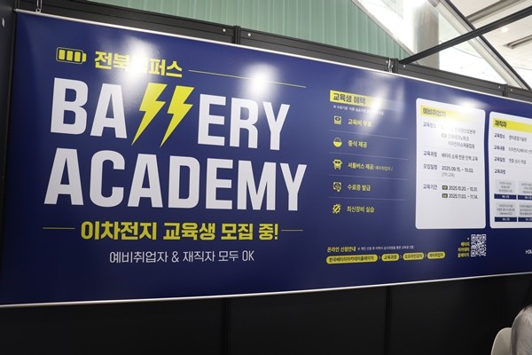 [인더스트리뉴스 이건오 기자] 한국배터리아카데미 전북캠퍼스는 9월 22일 서울 코엑스 1층 그랜드볼룸에서 개최된 ‘2025 배터리코리아(BATTERY KOREA 2025)’에서 전북테크노파크와 캠틱종합기술원이 함께하며 이차전지 관련 예비취업자, 구직자 교육 프로그램에 대해 소개했다.