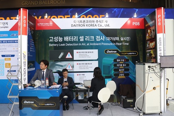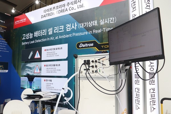 [인더스트리뉴스 이건오 기자] 다이트론코리아는 9월 22일 서울 코엑스 1층 그랜드볼룸에서 개최된 ‘2025 배터리코리아(BATTERY KOREA 2025)’에서 챔버 구성 필요 없이 대기 중에서 전해액 누출을 검사할 수 있는 고성능 배터리 셀 리크 검사 시스템을 선보였다.