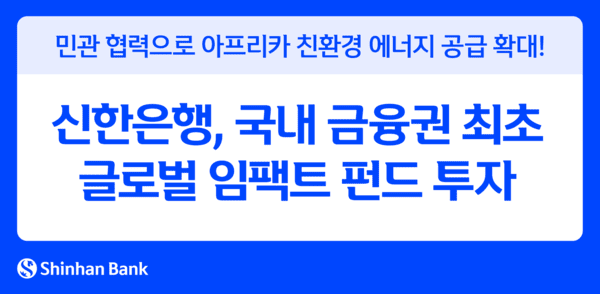 신한은행 글로벌사업그룹장을 맡고 있는 서승현 본부장은 “가장 어려운 시장에 자본을 공급하고 청정 에너지를 확산시키는 일에 동참하게 되어 뜻깊다”며 “이번 투자는 신한은행의 ESG 실천 의지를 보여주는 동시에 아프리카의 지속가능한 발전을 지원하는 중요한 출발점이 될 것”이라고 말했다.