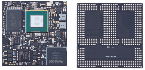 OSM-IMX95는 SGeT OSM 1.2 Size-L(45mm × 45mm) 규격을 채택한 모듈로, 강력한 연산 능력과 AI 성능을 동시에 구현한다.