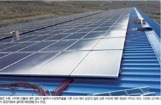 봉지재가 셀을 보호해 모듈의 내구성을 결정하는 가장 중요한 원자재 중 하나임에는 이견이 없을 것이다. 특히 저가의 백시트를 선호하는 국내시장 특성상 모듈의 내구성에 문제가 생길 가능성을 간과할 수 없는 상황에서, 제품력이 높은 POE 제품을 사용하는 것이 큰 비용 부담 없이 모듈의 신뢰성을 높이는 데 도움이 될 것이다. 특히, 고효율 모듈이나 사막형, 수상용 모듈을 개발해 해외시장에 진출하려는 국내 업체들에게는 제품의 안정성을 높이는 데 POE가 도움이 될 것으로 보인다.