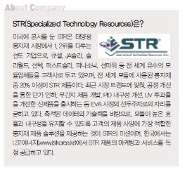 또한, STR 제품의 가장 큰 장점은 낮은 수분침투율로 2g/m²/day 이하의 MVTR(Moisture Vapor Transmittance Rate) 값을 가지며, 체적 저항 값도(Volume Resistivity) 1x1016Ohm·cm 값을 가져, 모듈 표면 유리에서 발생하는 이온 이동을 최소화한다. 그리고 UV Cut 파장이 300nm인 제품도 개발돼 모듈의 효율을 높이는 데도 도움이 된다.