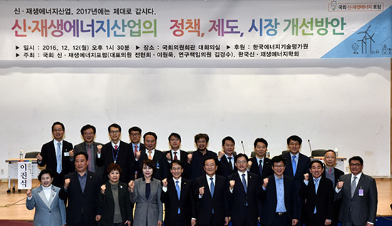 이와 때를 같이해 국회신재생에너지포럼은 ‘신재생에너지산업, 2017년에는 제대로 갑시다-신재생에너지산업의 정책, 제도, 시장 개선방안’ 세미나를 지난 12월 12일 국회의원회관 대회의실에서 개최했다.