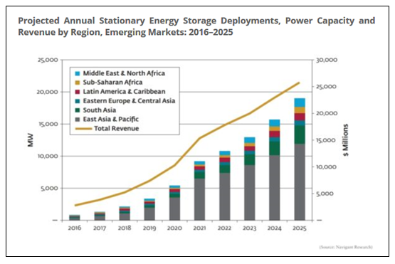 2017년 세계은행(World Bank) 보고서는 글로벌 ESS시장이 아시아와 같은 이머징마켓을 중심으로 급격한 성장이 예상된다고 발표했다. (아래 표 참고.)