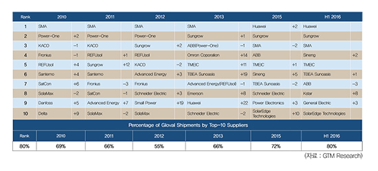 | 표2. 세계 태양광 인버터 생산 순위 |